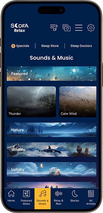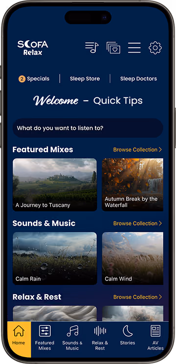 Choose any of desired sounds from entire catalog of immersive audio experience to embark on a night of relaxing sleep.