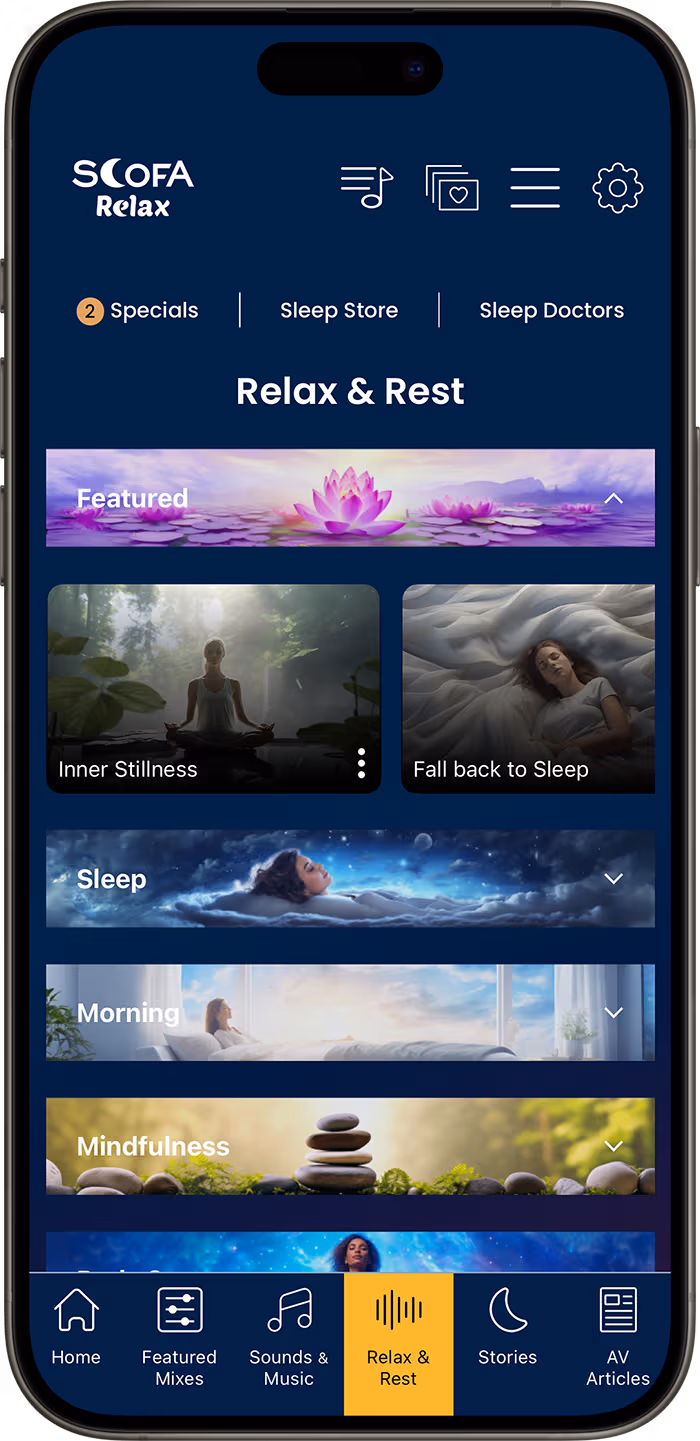 Ease into relaxation with our wide range of tailored meditations, perfect for your serene journey.